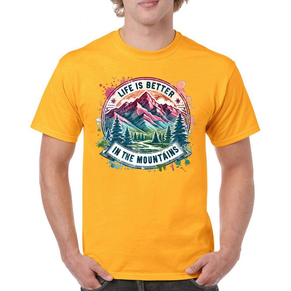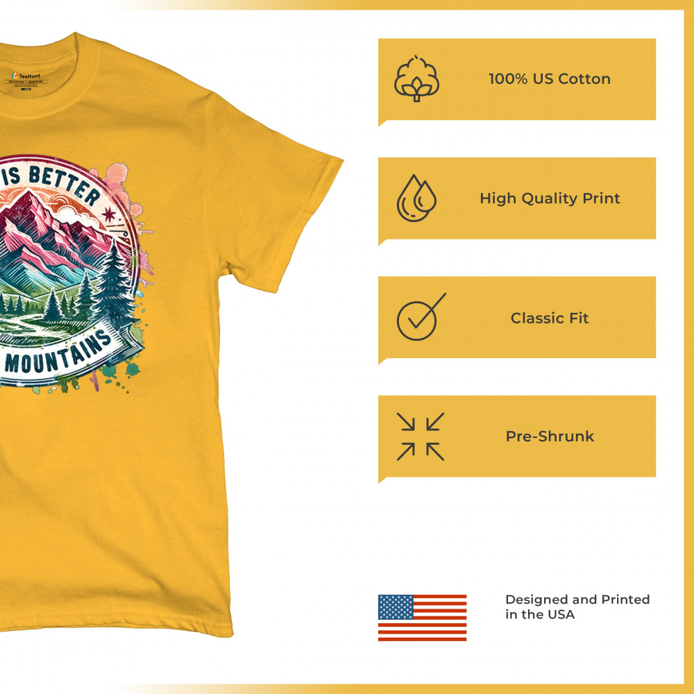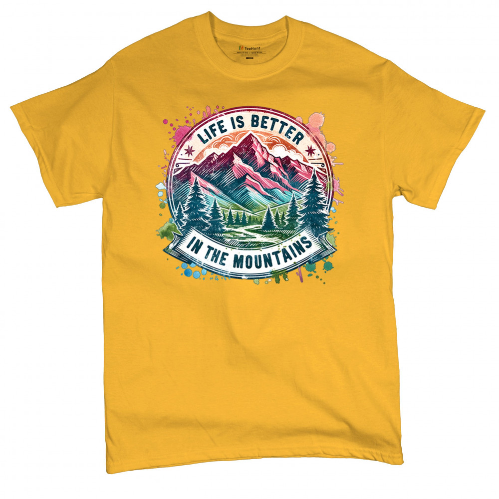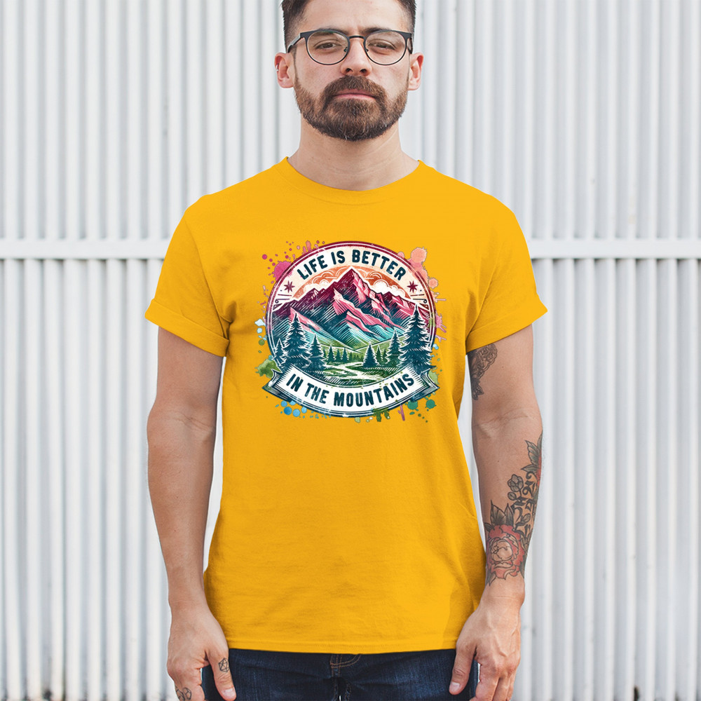 Life Is Better in the Mountains is designed for nature lovers, campers, and trail hikers who find peace in high altitudes. This colorful mountain scene captures wilderness vibes, camping escapes, and weekend hiking energy. Ideal for forest lovers, off-grid adventurers, and glamping fans alike.