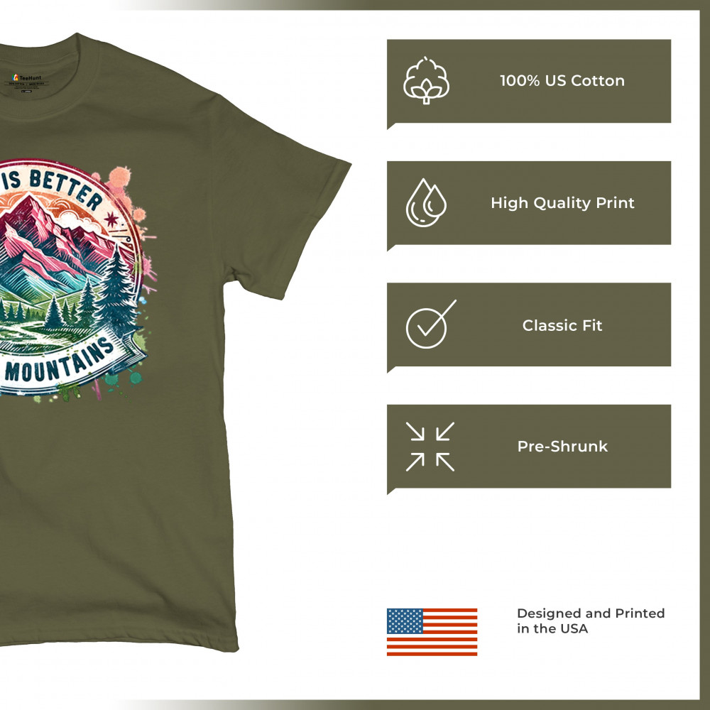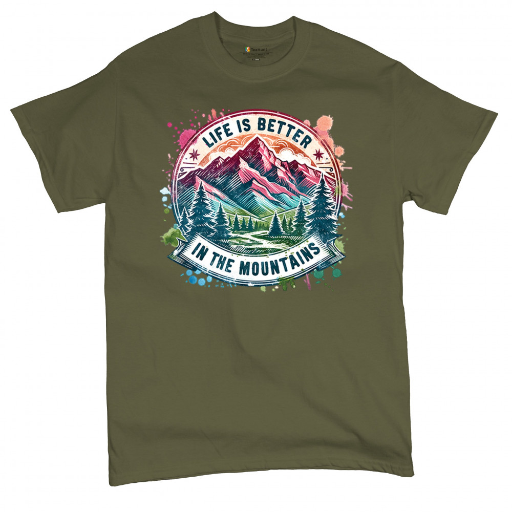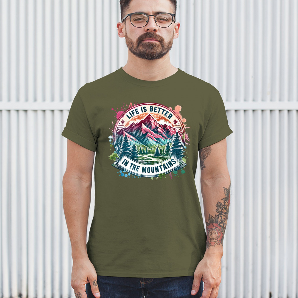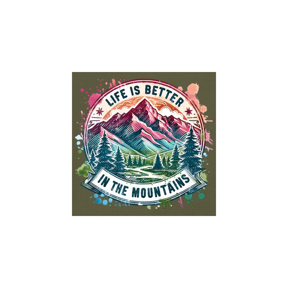 Life Is Better in the Mountains is designed for nature lovers, campers, and trail hikers who find peace in high altitudes. This colorful mountain scene captures wilderness vibes, camping escapes, and weekend hiking energy. Ideal for forest lovers, off-grid adventurers, and glamping fans alike.