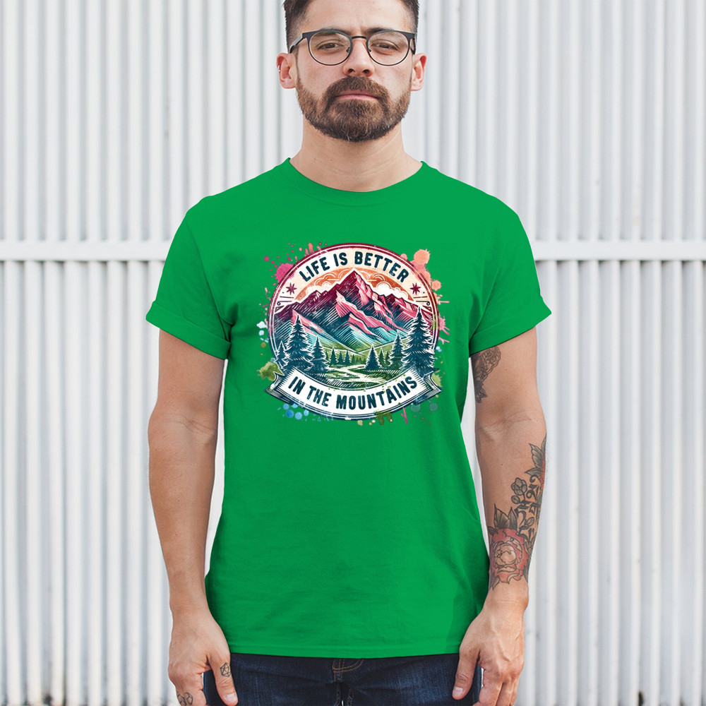 Life Is Better in the Mountains is designed for nature lovers, campers, and trail hikers who find peace in high altitudes. This colorful mountain scene captures wilderness vibes, camping escapes, and weekend hiking energy. Ideal for forest lovers, off-grid adventurers, and glamping fans alike.