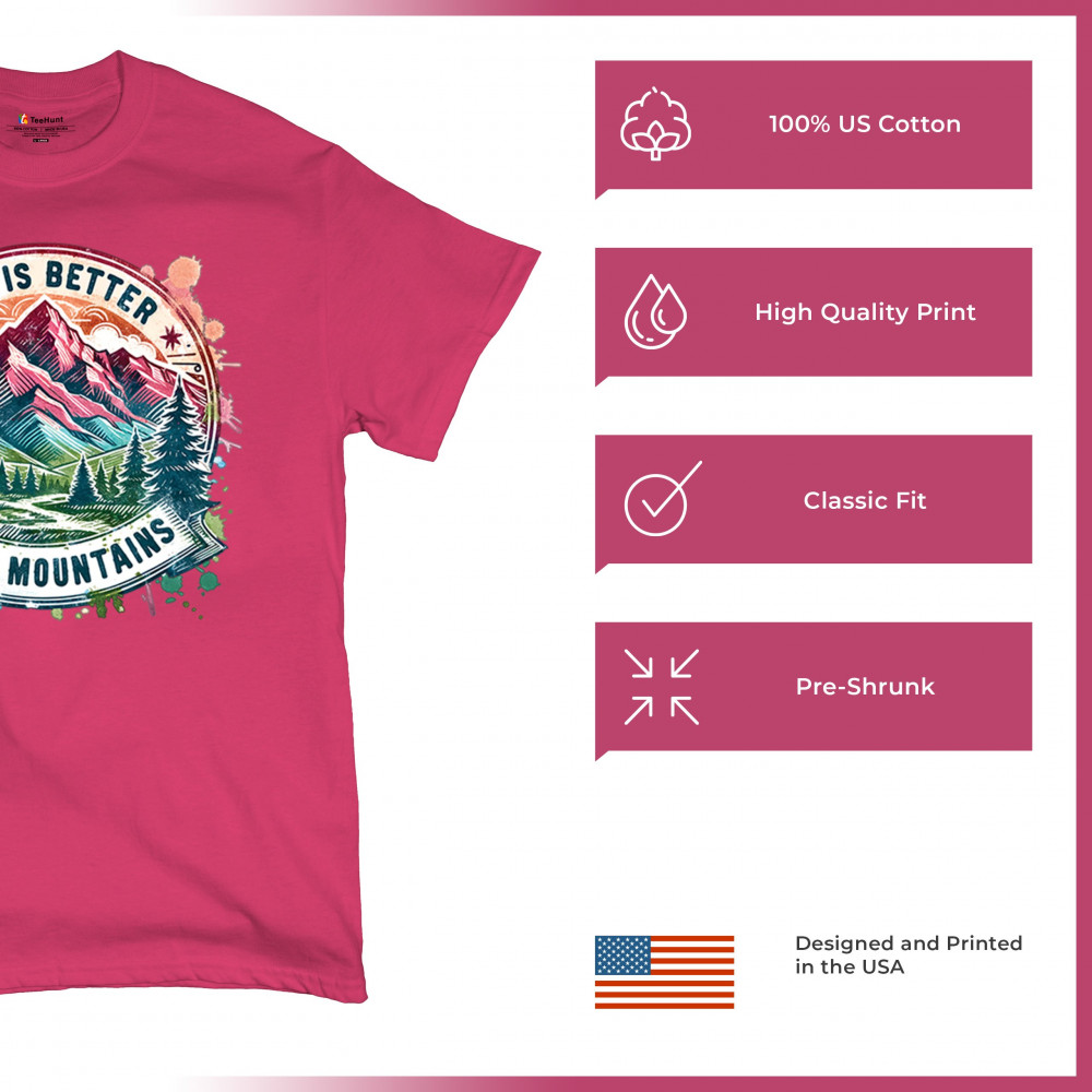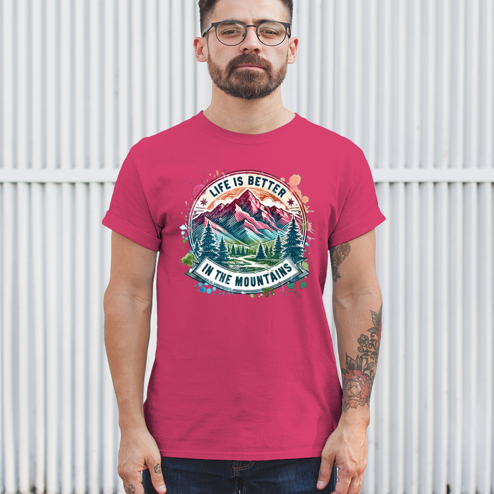 Life Is Better in the Mountains is designed for nature lovers, campers, and trail hikers who find peace in high altitudes. This colorful mountain scene captures wilderness vibes, camping escapes, and weekend hiking energy. Ideal for forest lovers, off-grid adventurers, and glamping fans alike.