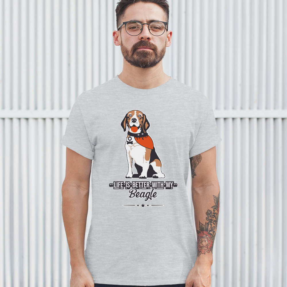 LIFE IS BETTER WITH MY BEAGLE t-shirt i love my dog best friend men's tee ash gray