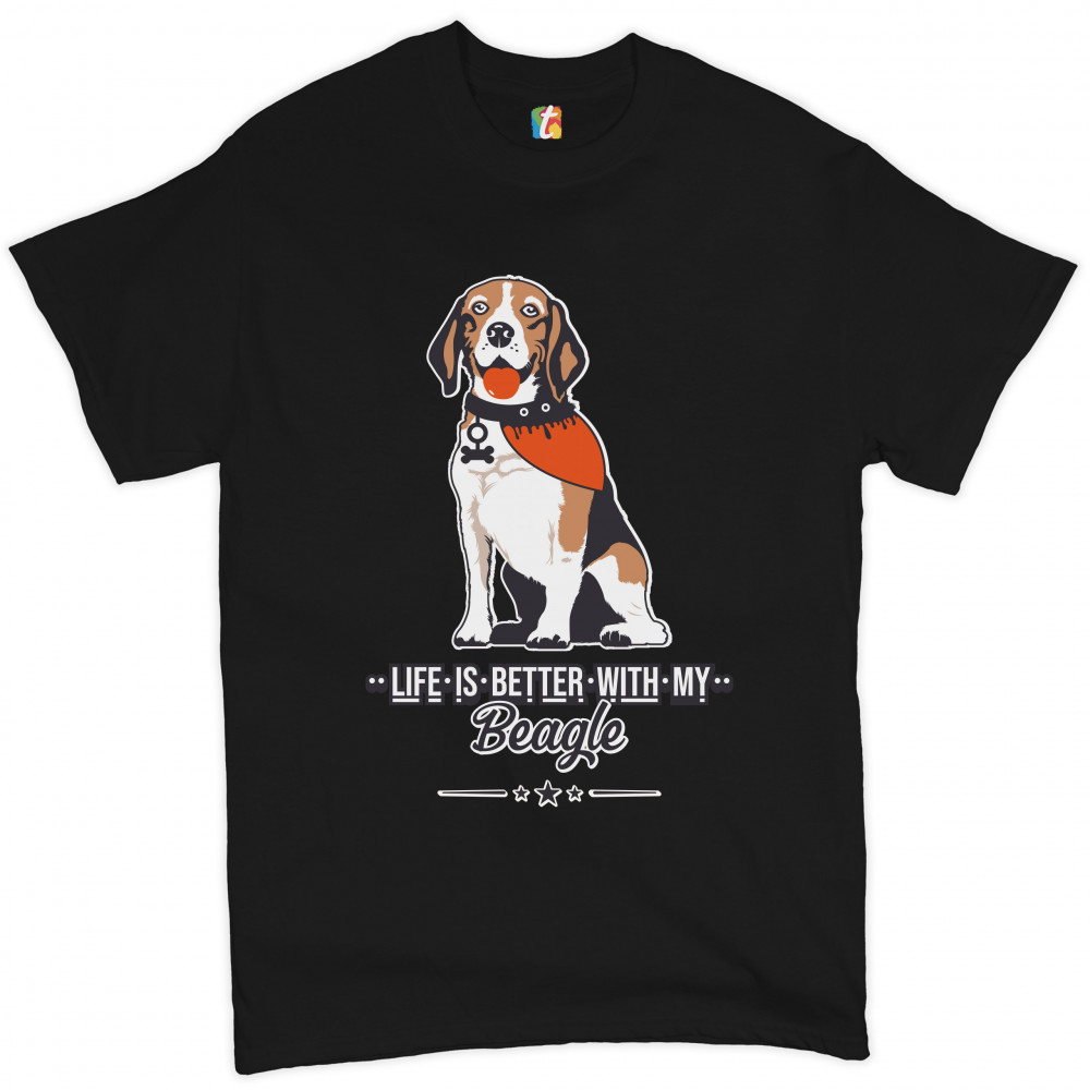 LIFE IS BETTER WITH MY BEAGLE t-shirt i love my dog best friend men's tee black