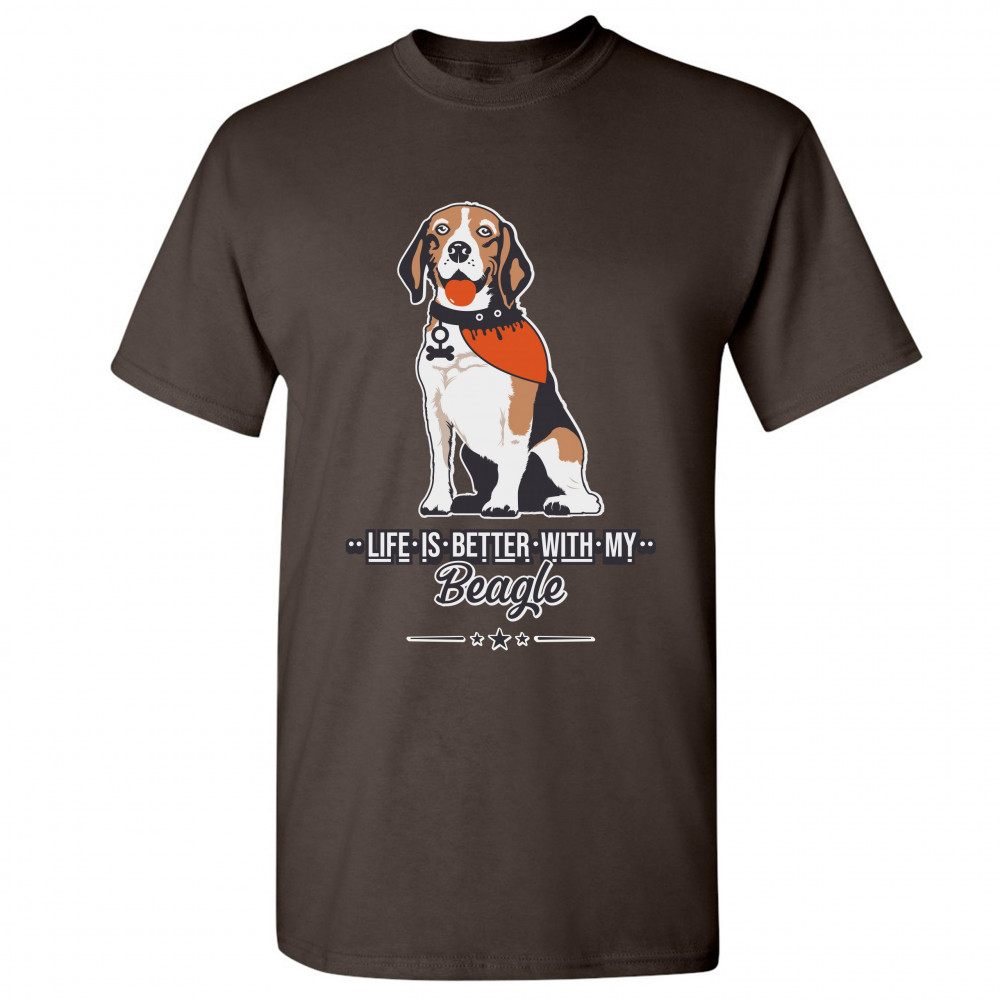 LIFE IS BETTER WITH MY BEAGLE t-shirt i love my dog best friend men's tee brown