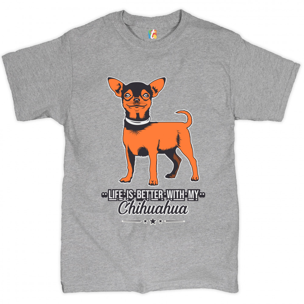 LIFE IS BETTER WITH MY CHIHUAHUA t-shirt toy dog lover cute pet men's tee gray