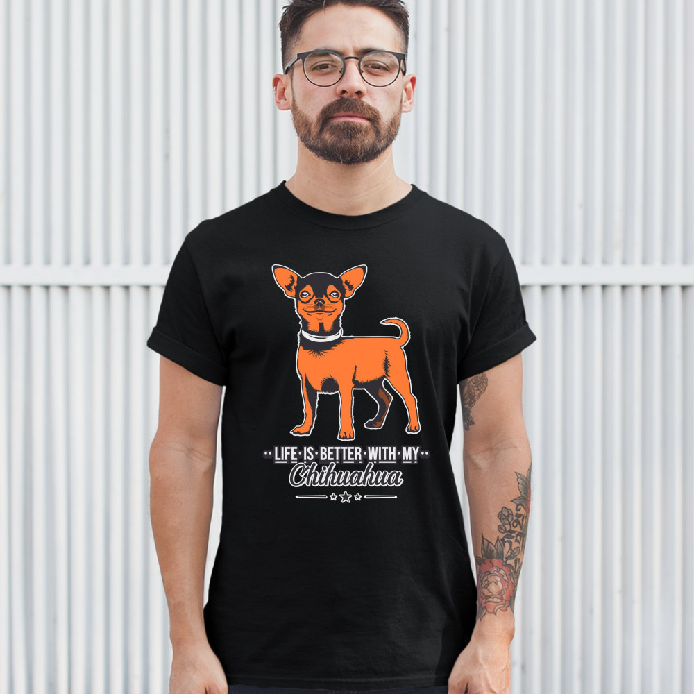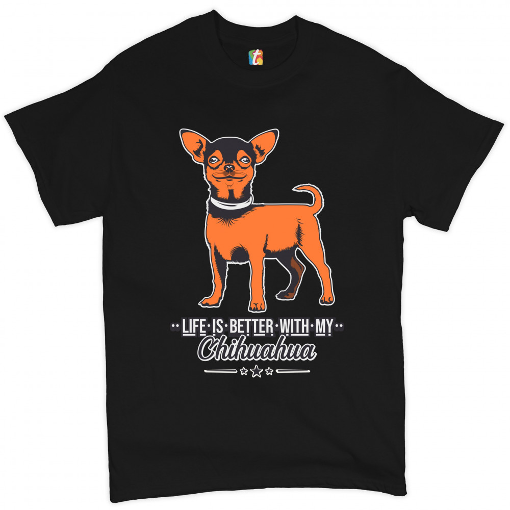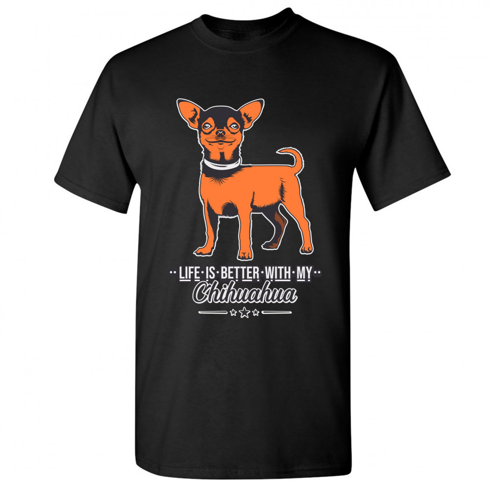LIFE IS BETTER WITH MY CHIHUAHUA t-shirt toy dog lover cute pet men's tee black