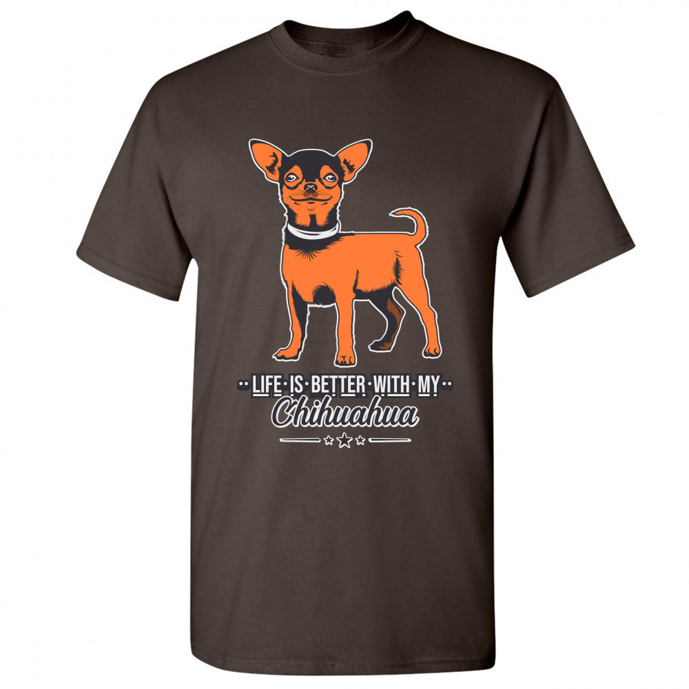LIFE IS BETTER WITH MY CHIHUAHUA t-shirt toy dog lover cute pet men's tee brown