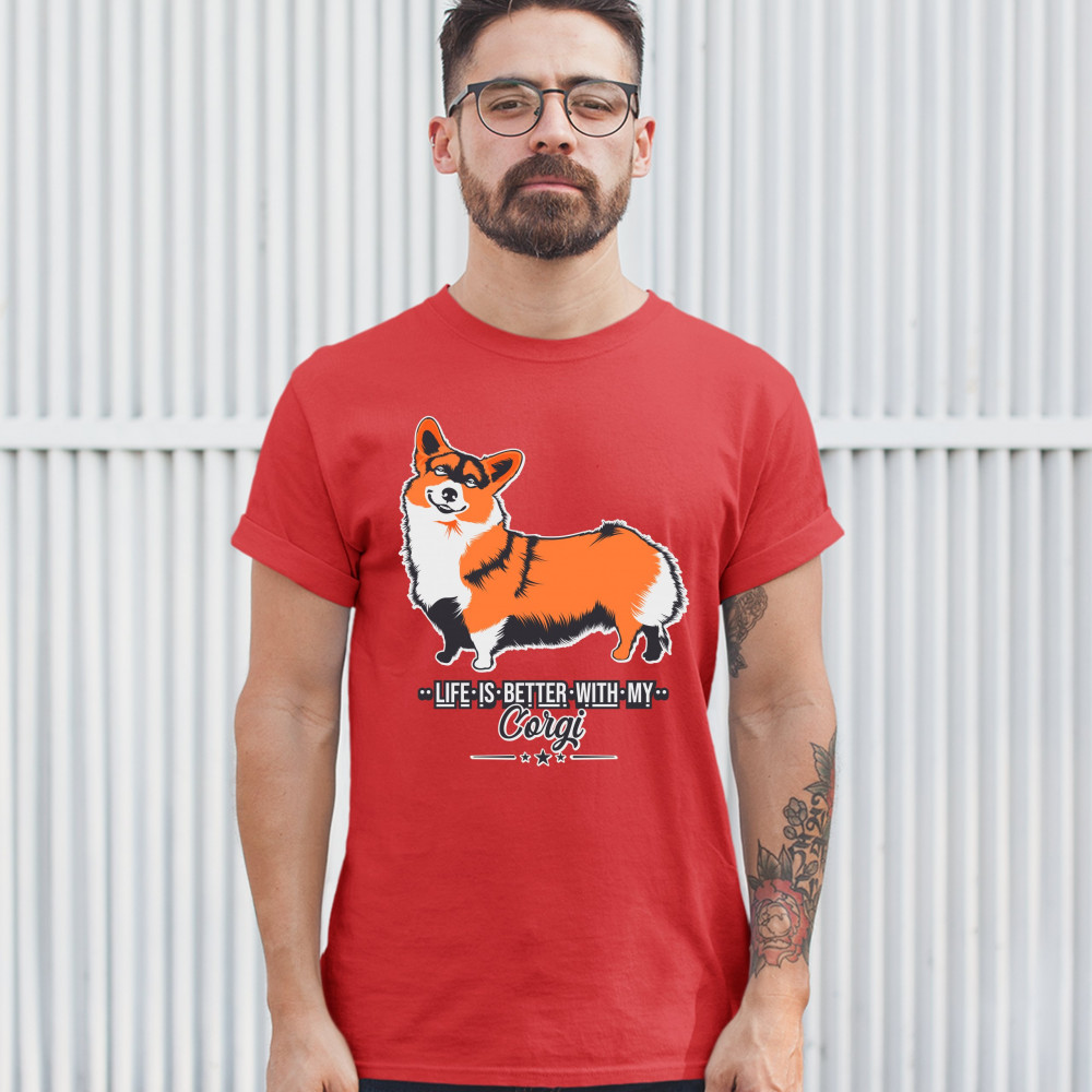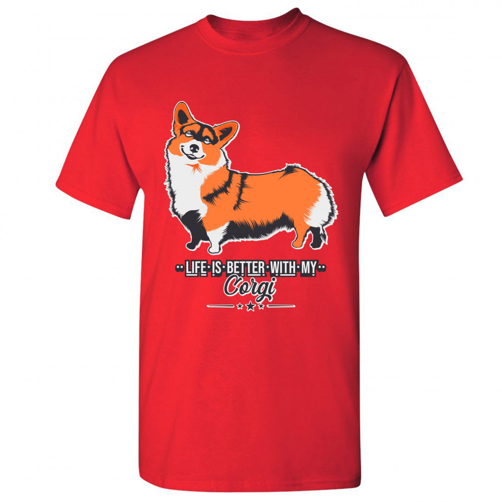 LIFE IS BETTER WITH MY CORGI t-shirt pet best friend dog lover men's tee red