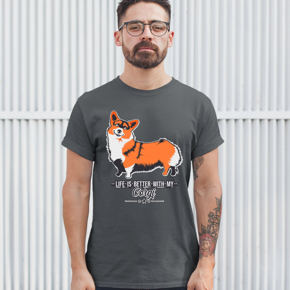 LIFE IS BETTER WITH MY CORGI t-shirt pet best friend dog lover men's tee charcoal