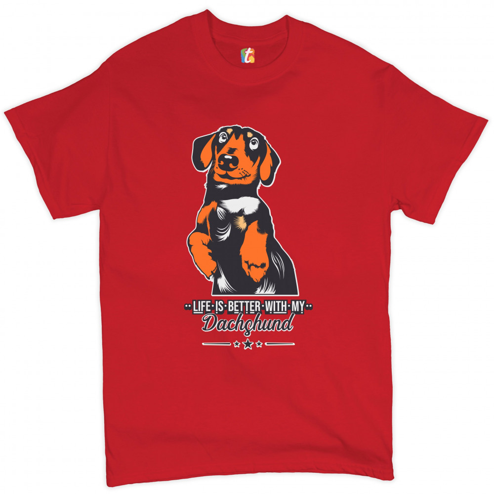LIFE IS BETTER WITH MY DACHSUND t-shirt pet lover i love my dog men's tee red