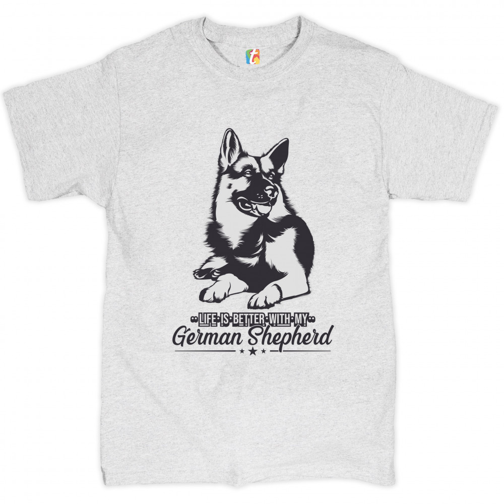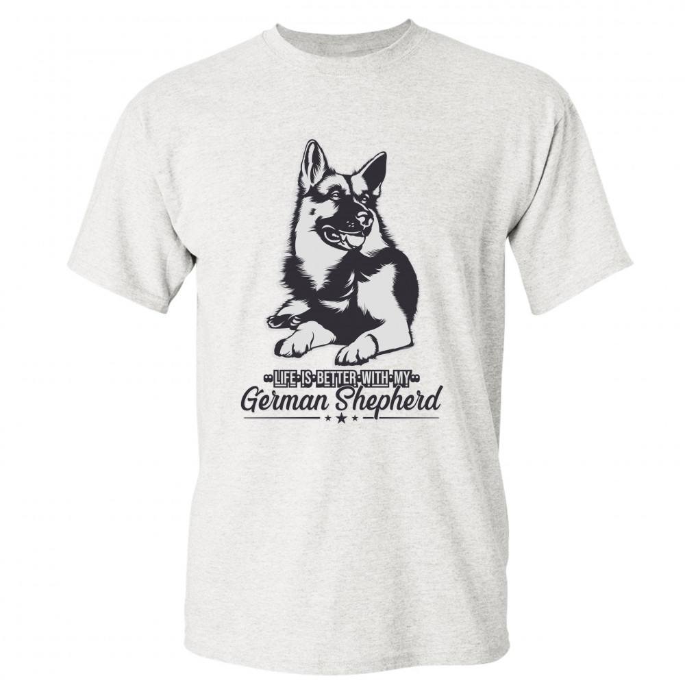 LIFE IS BETTER WITH MY GERMAN SHEPHERD t-shirt dog lover pet men's tee ash gray
