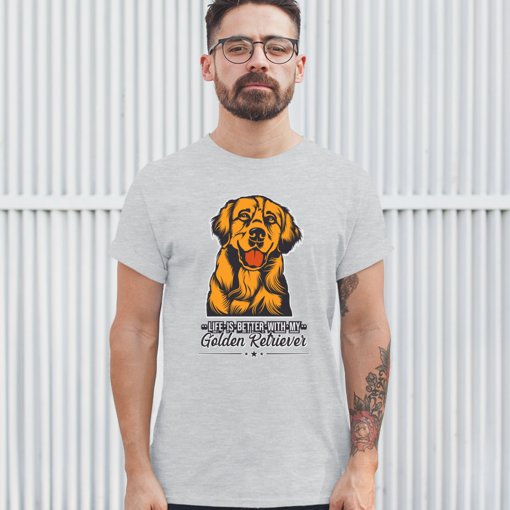 LIFE IS BETTER WITH MY GOLDEN RETRIEVER t-shirt puppy dog owner men's tee ash gray