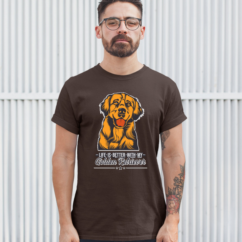 LIFE IS BETTER WITH MY GOLDEN RETRIEVER t-shirt puppy dog owner men's tee brown