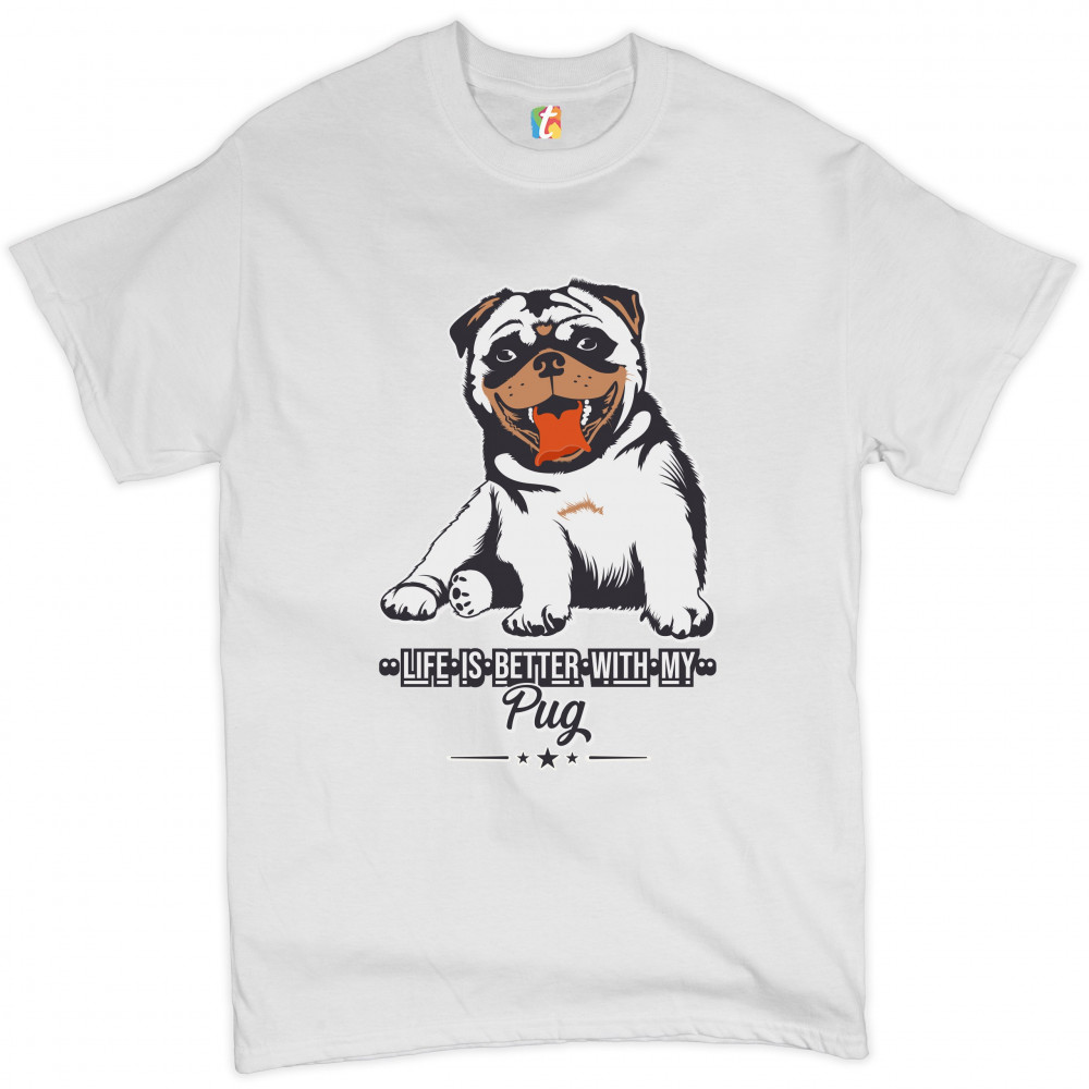 LIFE IS BETTER WITH MY PUG t-shirt cute pet adorable dog breed men's tee white