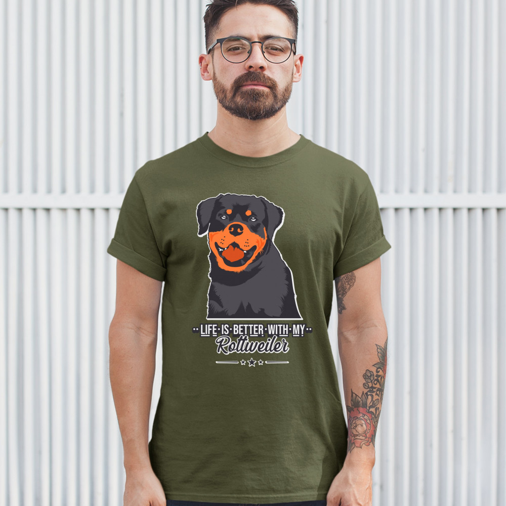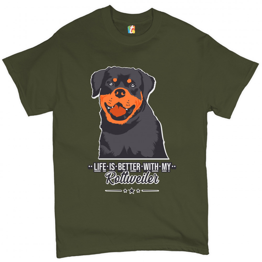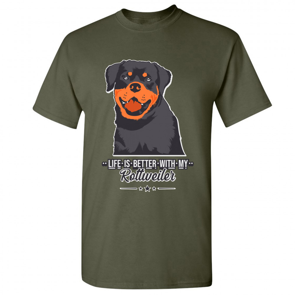 LIFE IS BETTER WITH MY ROTTWEILER t-shirt rottie pet dog lover men's tee military green