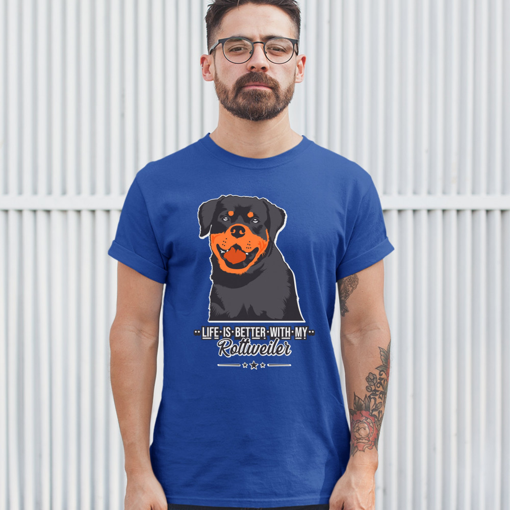 LIFE IS BETTER WITH MY ROTTWEILER t-shirt rottie pet dog lover men's tee royal blue