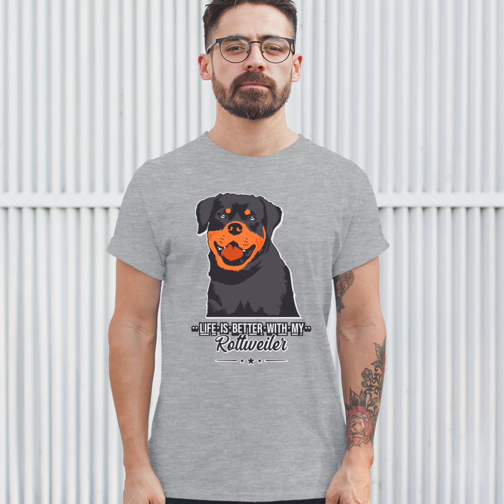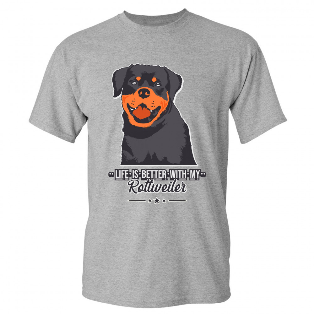 LIFE IS BETTER WITH MY ROTTWEILER t-shirt rottie pet dog lover men's tee gray
