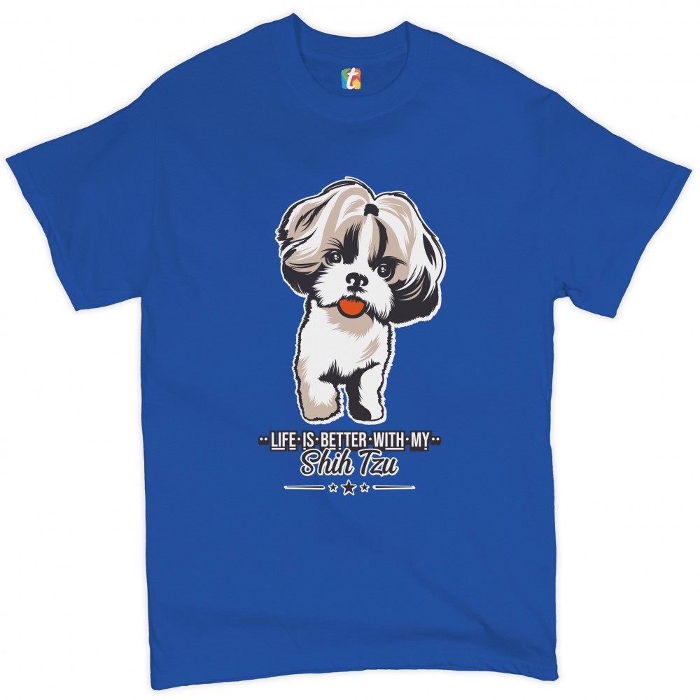 LIFE IS BETTER WITH MY SHIH TZU t-shirt small dog lover toy dog men's tee royal blue