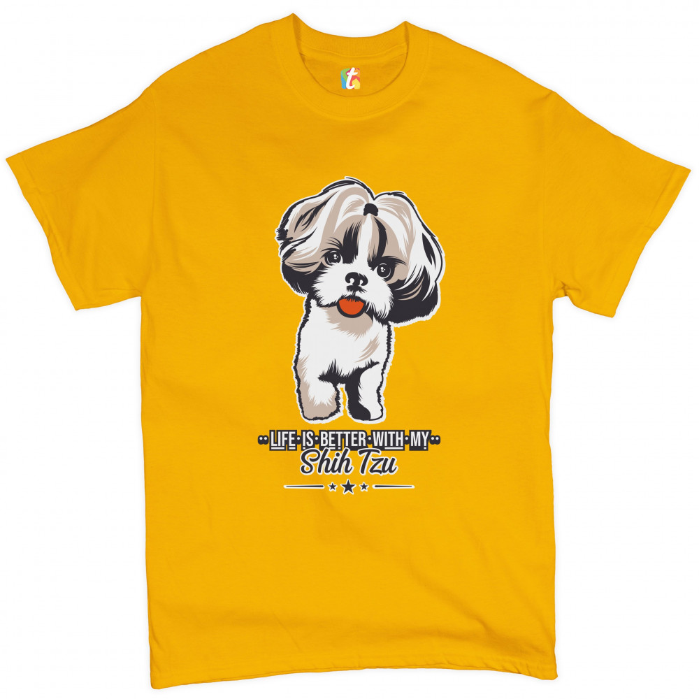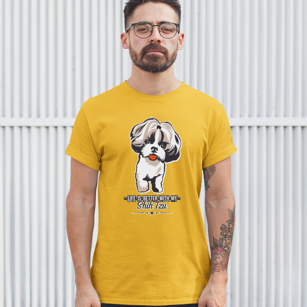 LIFE IS BETTER WITH MY SHIH TZU t-shirt small dog lover toy dog men's tee yellow