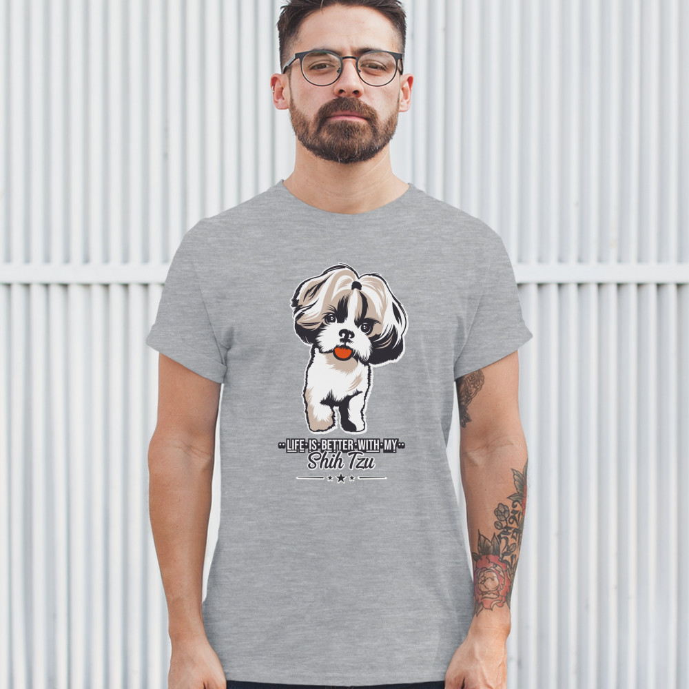 LIFE IS BETTER WITH MY SHIH TZU t-shirt small dog lover toy dog men's tee gray