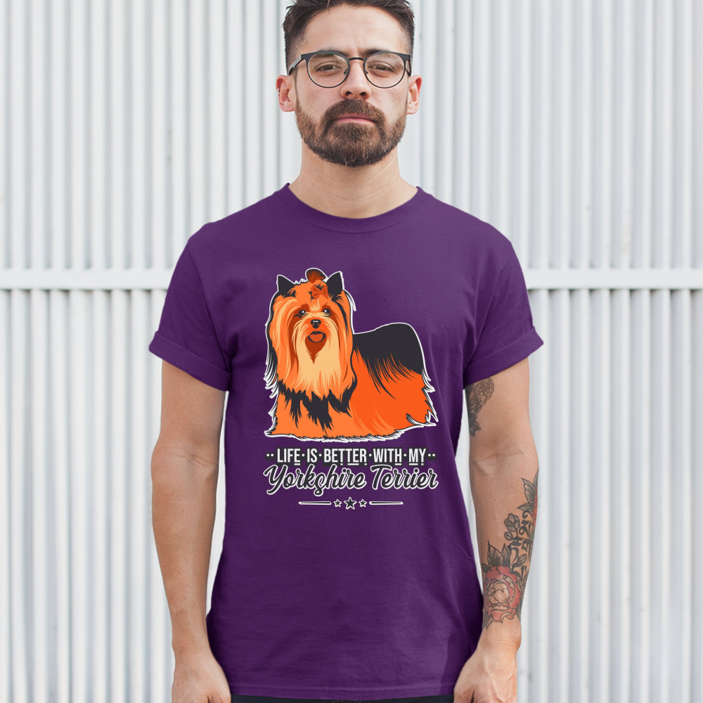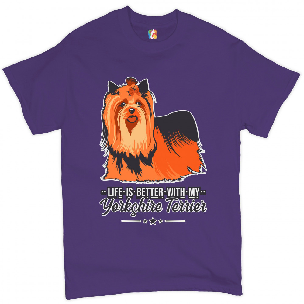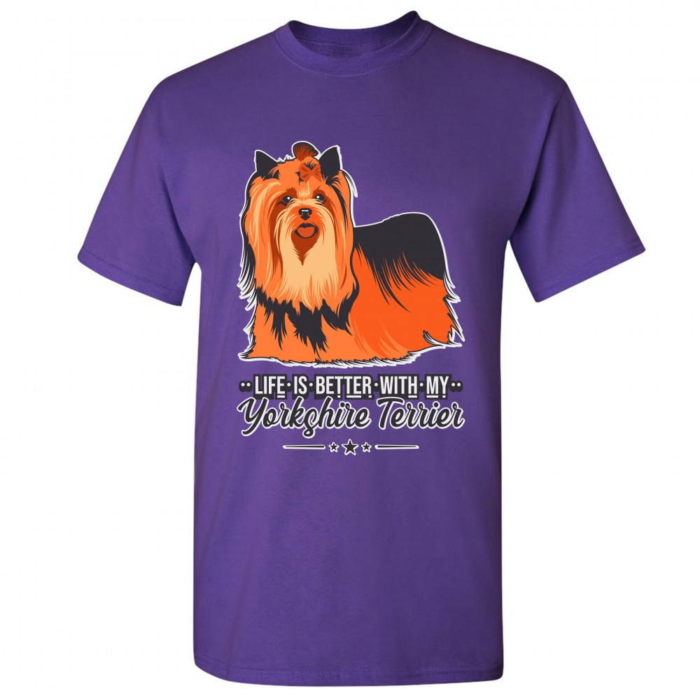 LIFE IS BETTER WITH MY YORKSHIRE TERRIER t-shirt yorkie toy dog men's tee purple