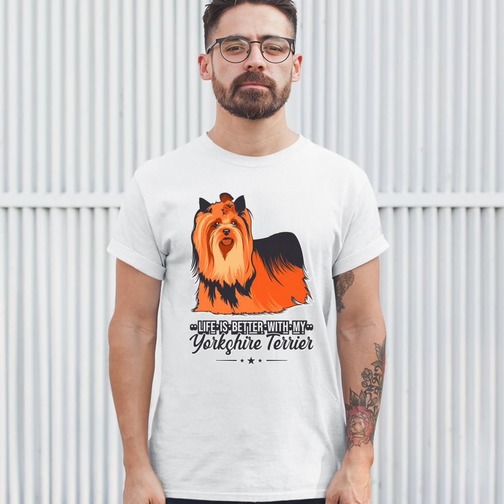 LIFE IS BETTER WITH MY YORKSHIRE TERRIER t-shirt yorkie toy dog men's tee white