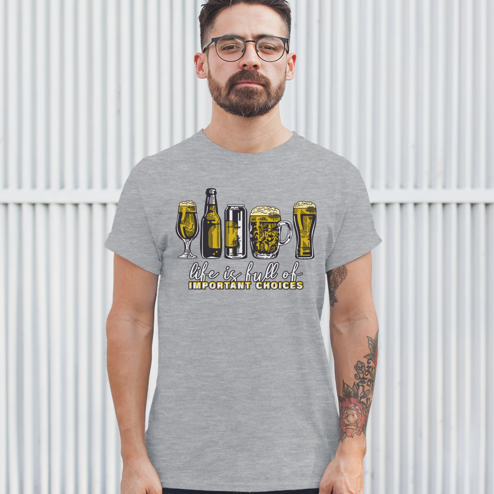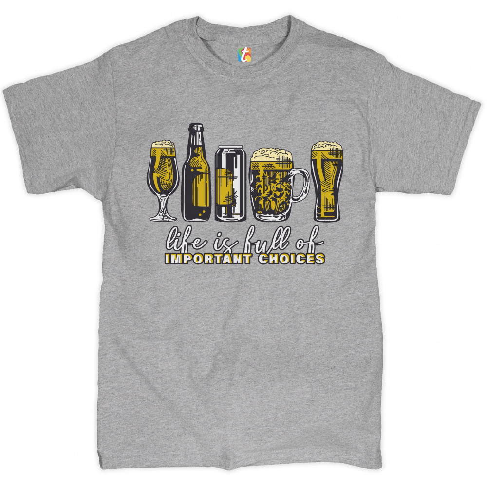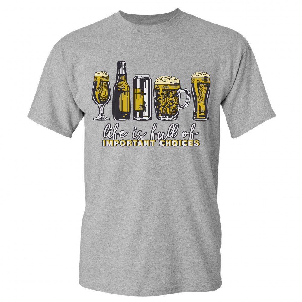 LIFE IS FULL OF IMPORTANT CHOICES t-shirt funny beer drinking ipa men's tee gray