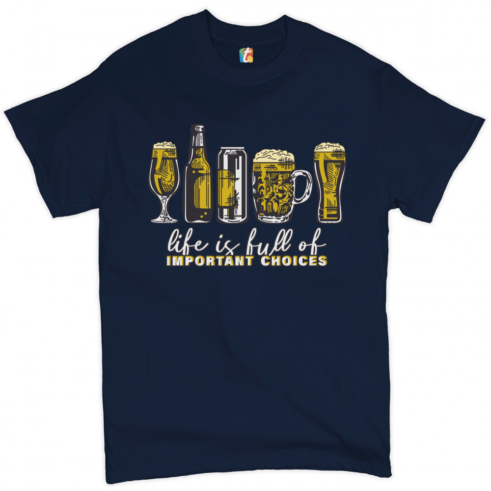 LIFE IS FULL OF IMPORTANT CHOICES t-shirt funny beer drinking ipa men's tee navy blue