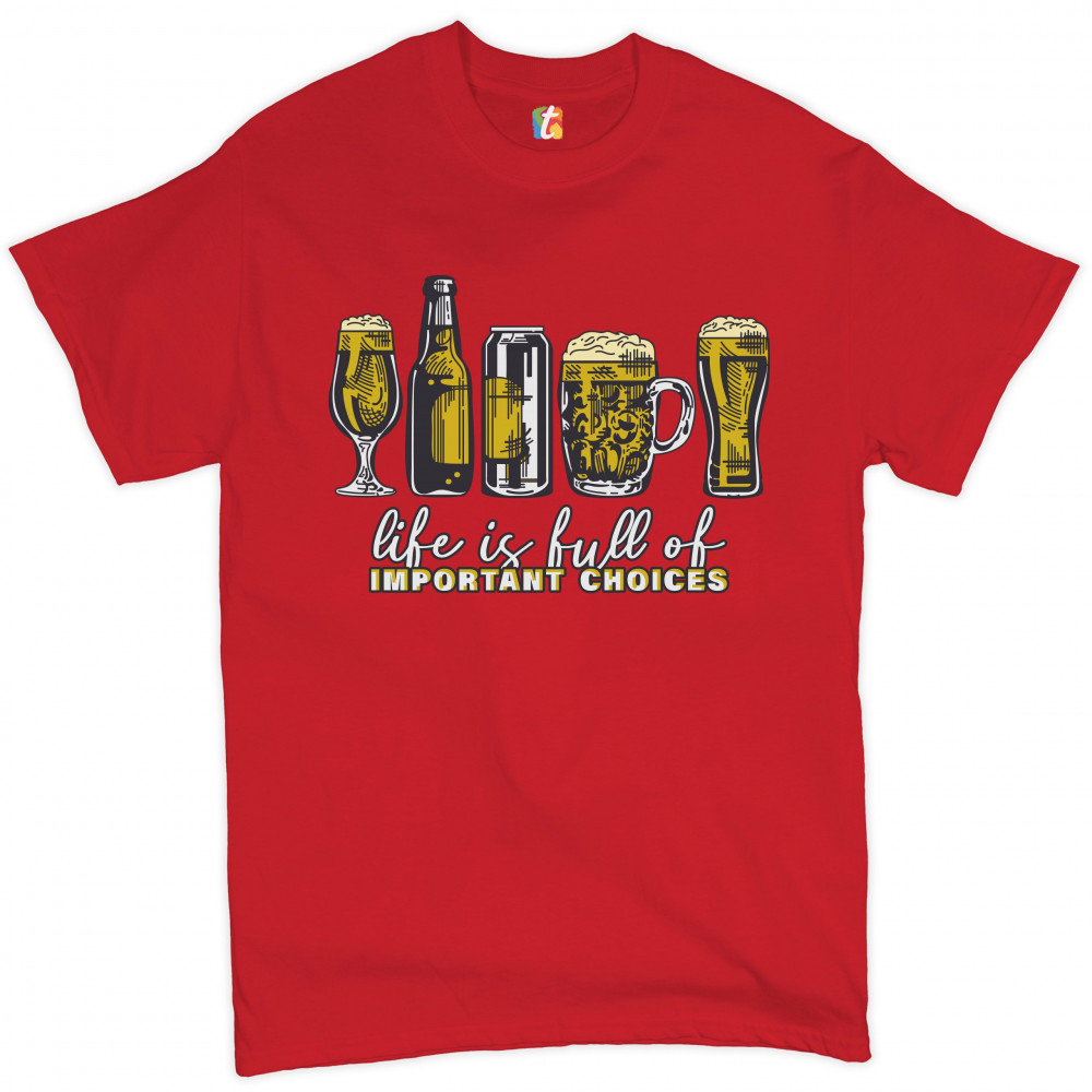 LIFE IS FULL OF IMPORTANT CHOICES t-shirt funny beer drinking ipa men's tee red