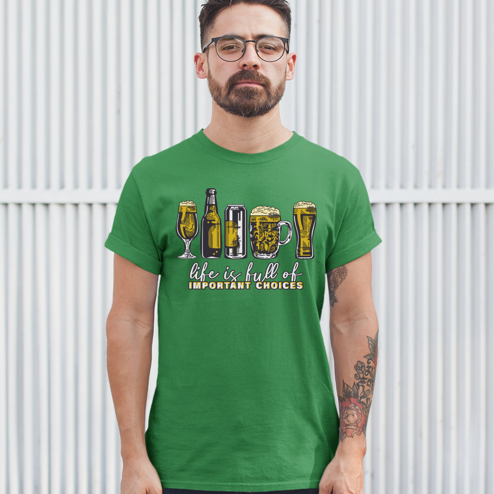 LIFE IS FULL OF IMPORTANT CHOICES t-shirt funny beer drinking ipa men's tee green