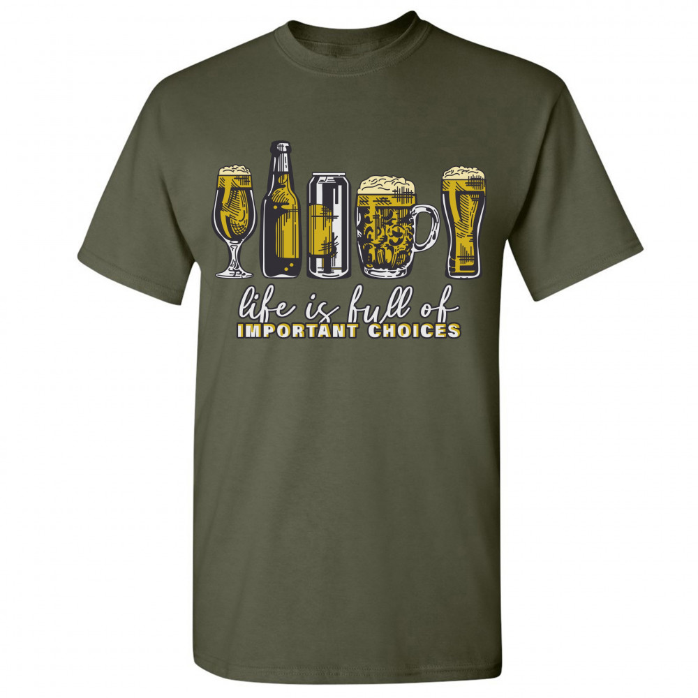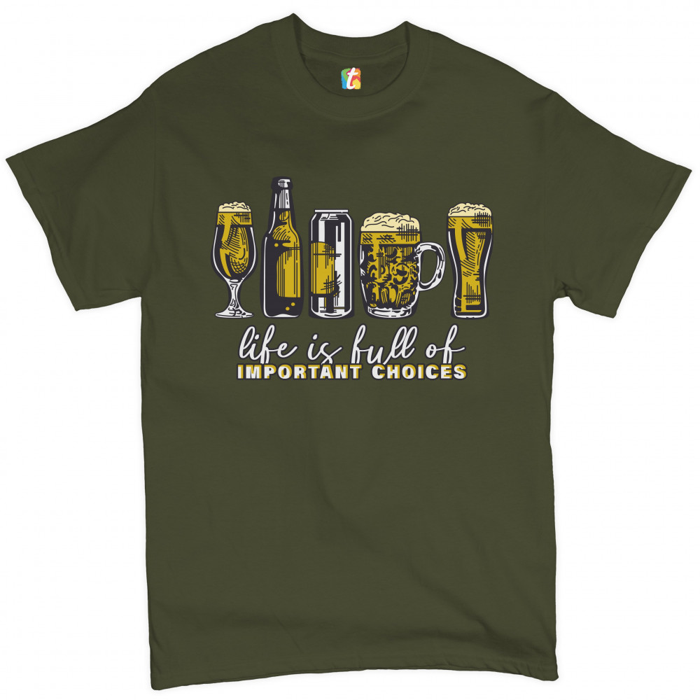 LIFE IS FULL OF IMPORTANT CHOICES t-shirt funny beer drinking ipa men's tee military green