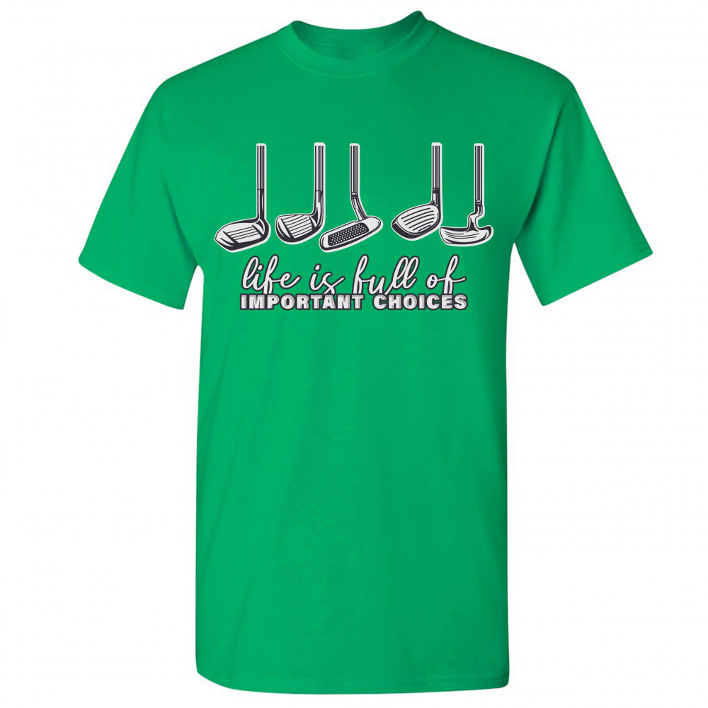 LIFE IS FULL OF IMPORTANT CHOICES t-shirt funny golf clubs golfing men's tee green