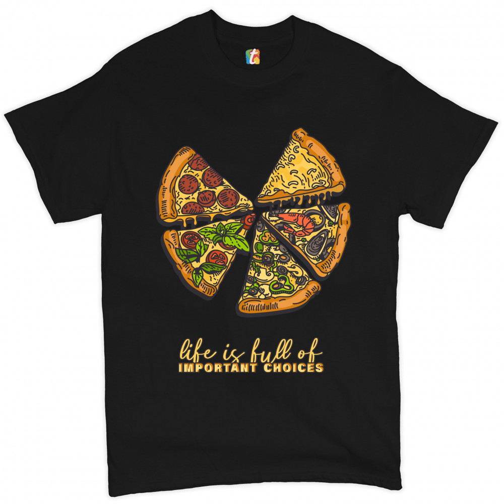 LIFE IS FULL OF IMPORTANT CHOICES t-shirt funny pepperoni pizza men's tee black