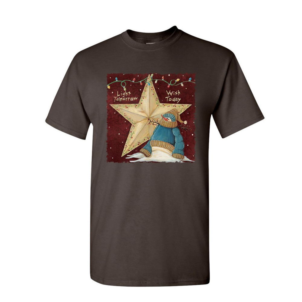LIGHT TOMORROW WITH TODAY t-shirt cute christmas snowman holiday mens tee shirt brown