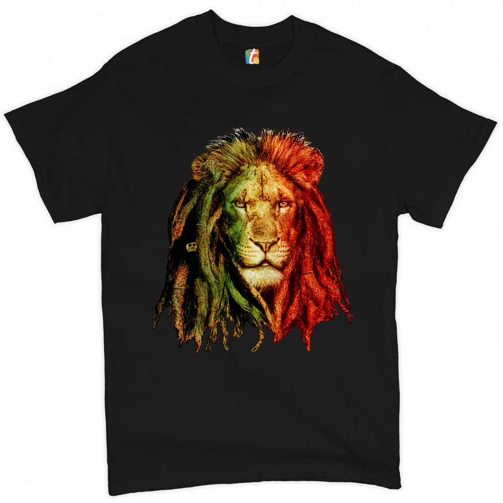 LION WITH DREADLOCKS t-shirt rastafari jah jamaica marijuana 420 men's tee black