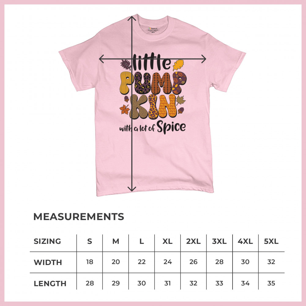 Spice up your fall wardrobe with this 'Little Pumpkin with a Lot of Spice' design, perfect for adding a festive touch to your seasonal outings. Whether you're visiting the pumpkin patch or enjoying a cozy autumn night, this playful design is a fun and vibrant way to embrace the fall spirit. Ideal for Thanksgiving, Halloween, and beyond!
