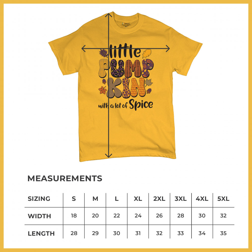 Spice up your fall wardrobe with this 'Little Pumpkin with a Lot of Spice' design, perfect for adding a festive touch to your seasonal outings. Whether you're visiting the pumpkin patch or enjoying a cozy autumn night, this playful design is a fun and vibrant way to embrace the fall spirit. Ideal for Thanksgiving, Halloween, and beyond!
