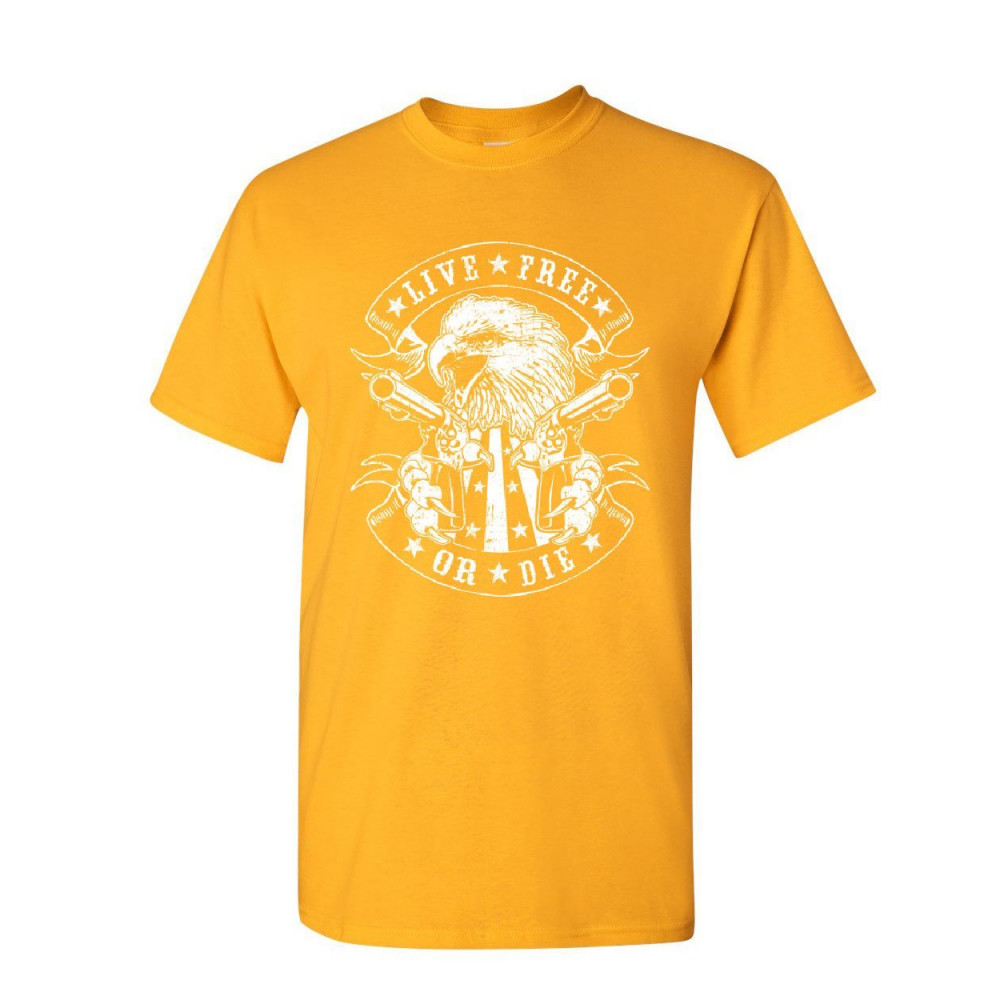 LIVE FREE OR DIE t-shirt eagle biker 2nd amendment american flag mens tee shirt yellow