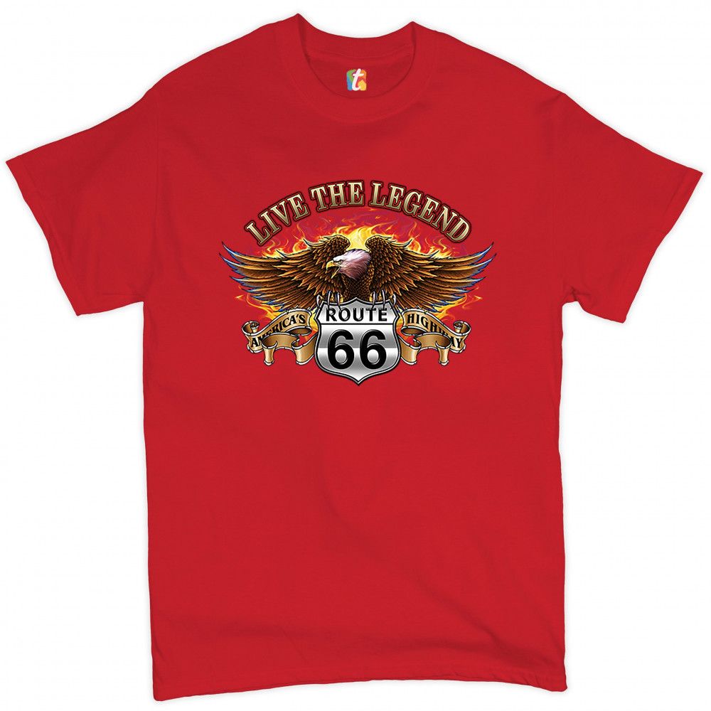 LIVE THE LEGEND AMERICA'S HIGHWAYS t-shirt route 66 bald eagle men's tee red