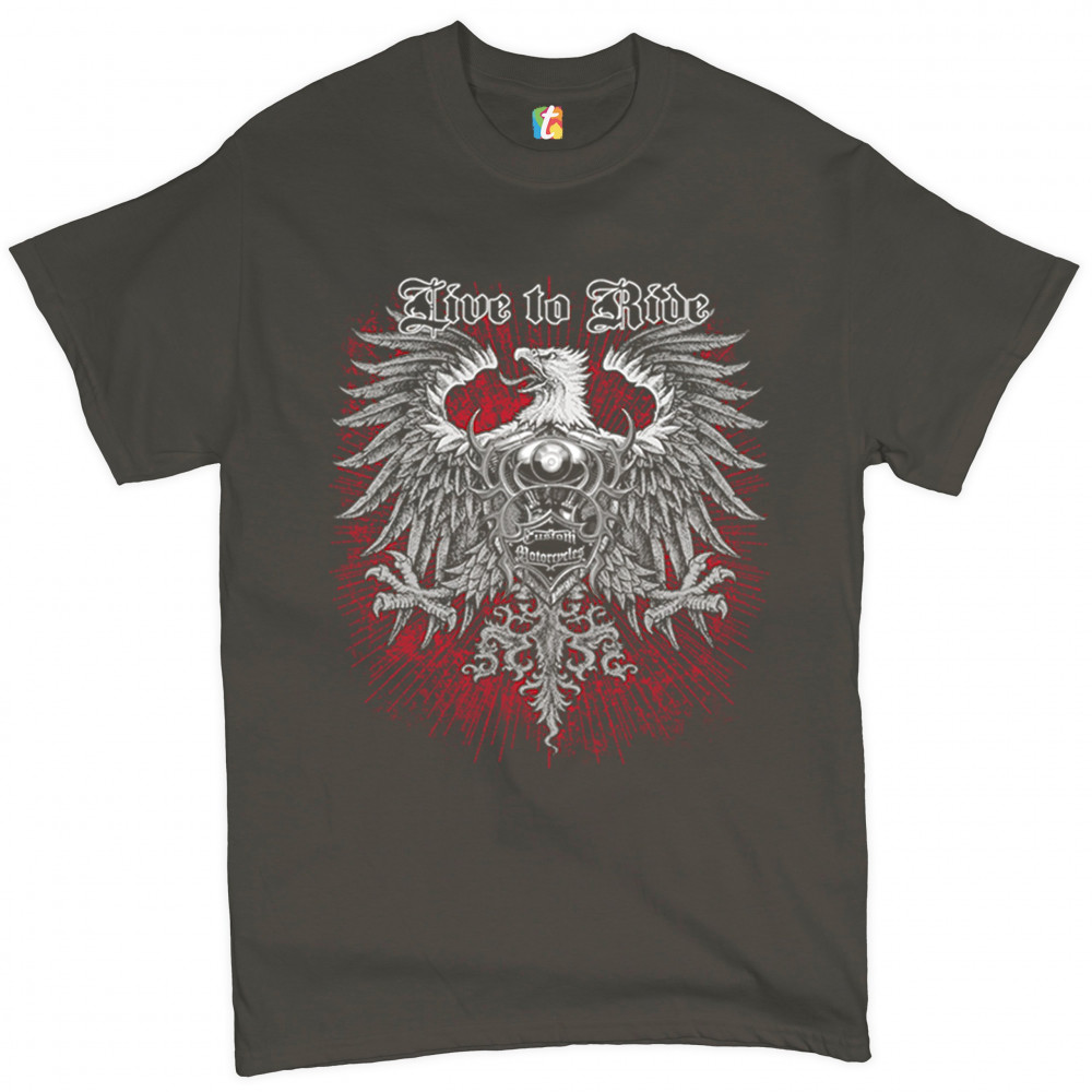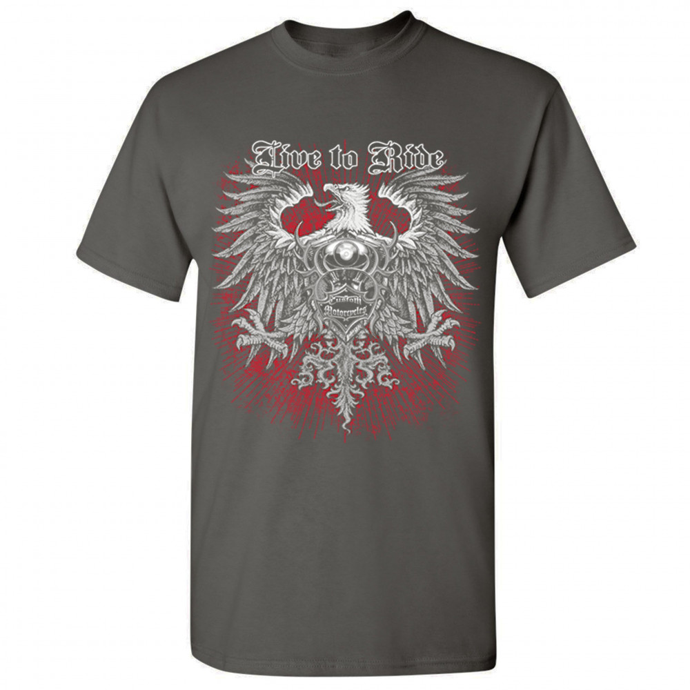 LIVE TO RIDE t-shirt custom motorcycles mc biker gang rider eagle men's tee charcoal