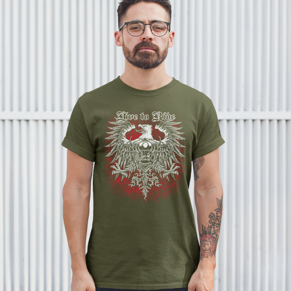 LIVE TO RIDE t-shirt custom motorcycles mc biker gang rider eagle men's tee military green