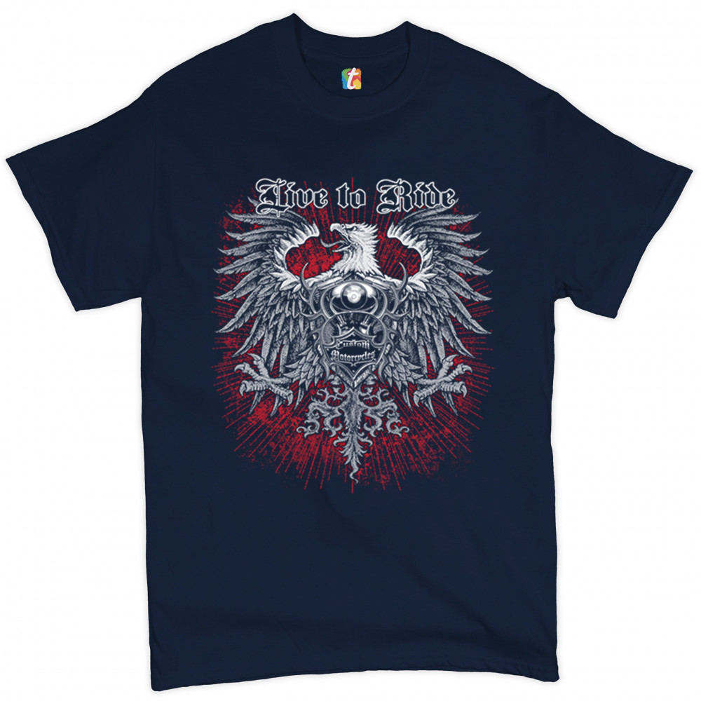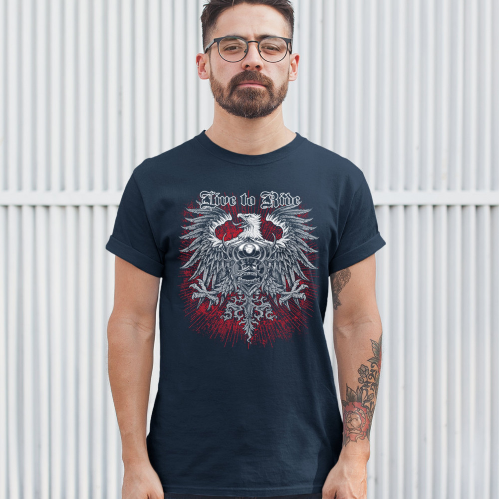 LIVE TO RIDE t-shirt custom motorcycles mc biker gang rider eagle men's tee navy blue