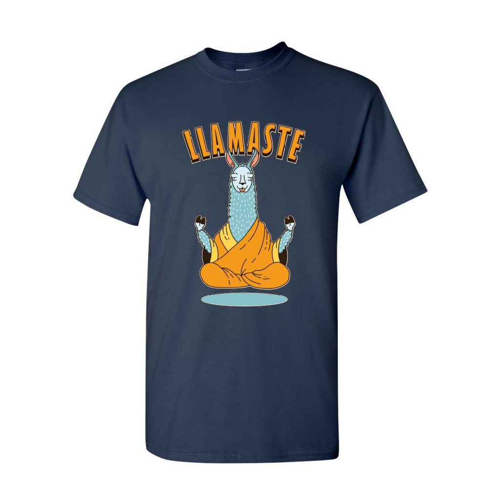 LLAMASTE t-shirt funny yoga namaste llama peace pilates lotus om mens tee shirt navy blue