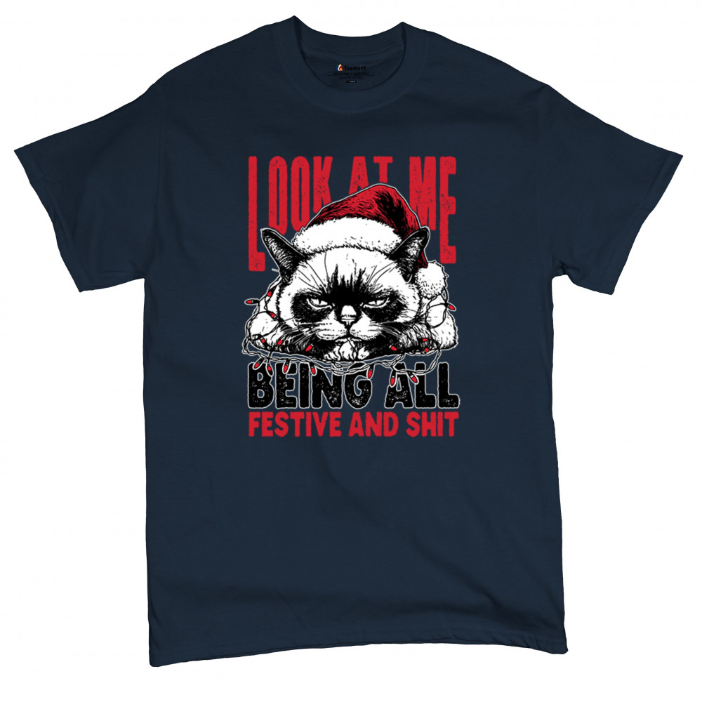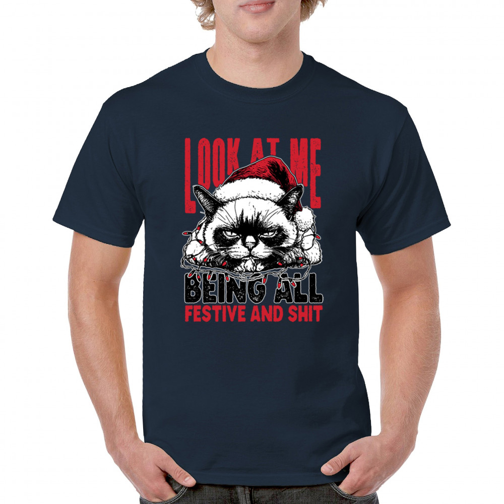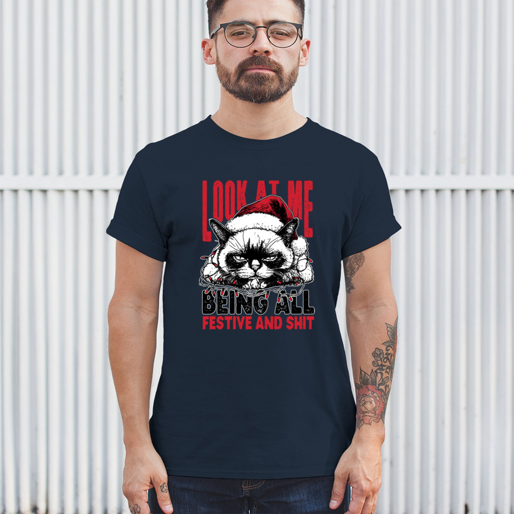 Grumpy Cat Christmas design with Santa hat, Christmas tree humor, Let It Snow vibes, Jingle Bells style, and sarcastic Merry Xmas spirit.