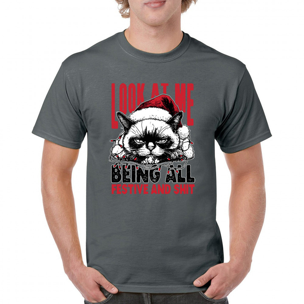 Grumpy Cat Christmas design with Santa hat, Christmas tree humor, Let It Snow vibes, Jingle Bells style, and sarcastic Merry Xmas spirit.