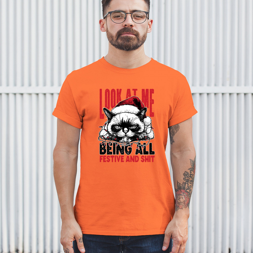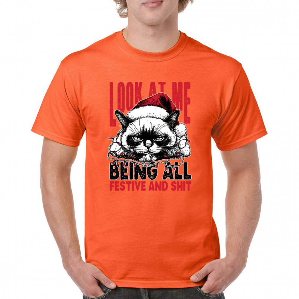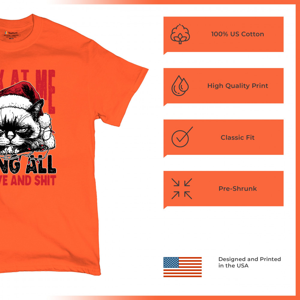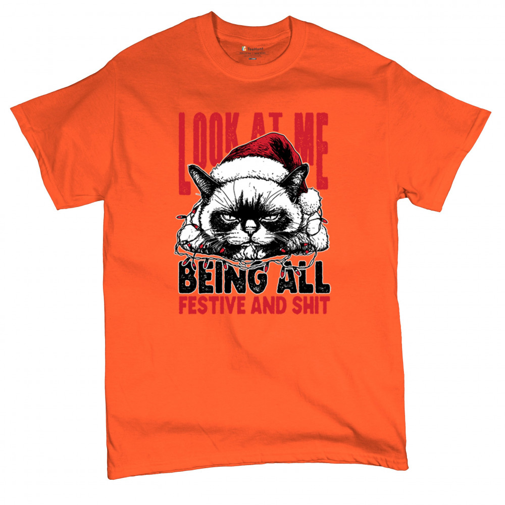 Grumpy Cat Christmas design with Santa hat, Christmas tree humor, Let It Snow vibes, Jingle Bells style, and sarcastic Merry Xmas spirit.