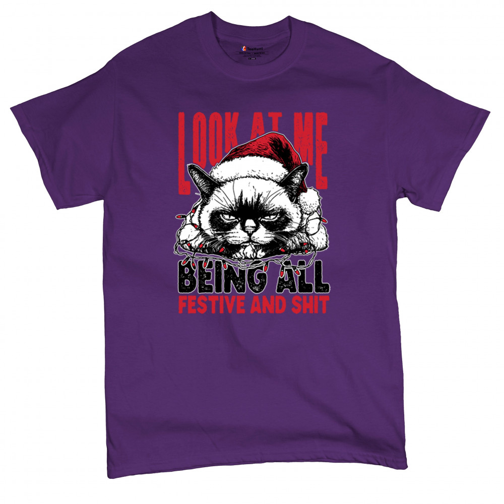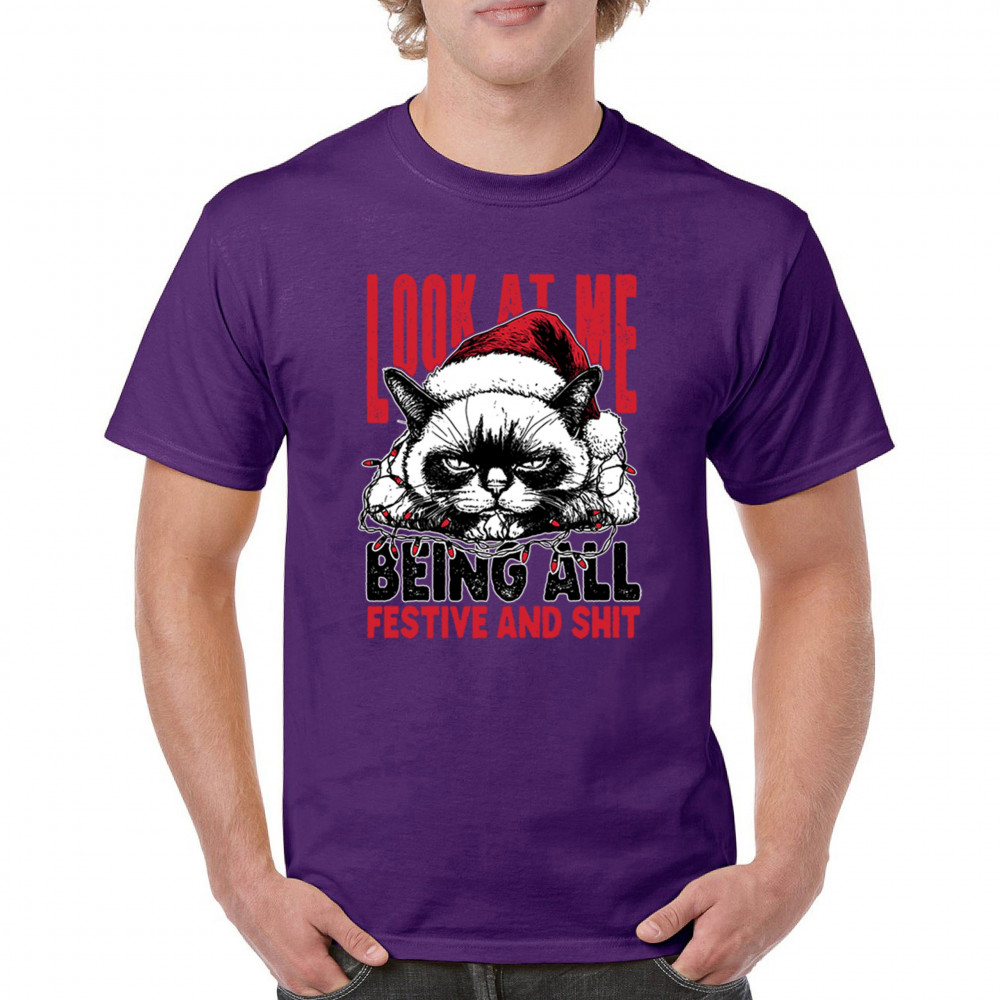 Grumpy Cat Christmas design with Santa hat, Christmas tree humor, Let It Snow vibes, Jingle Bells style, and sarcastic Merry Xmas spirit.