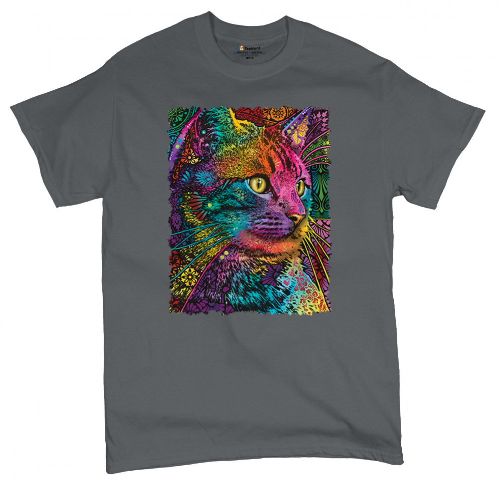 LOVABLE CAT t-shirt dean russo colorful felis catus pattern art men's tee charcoal
