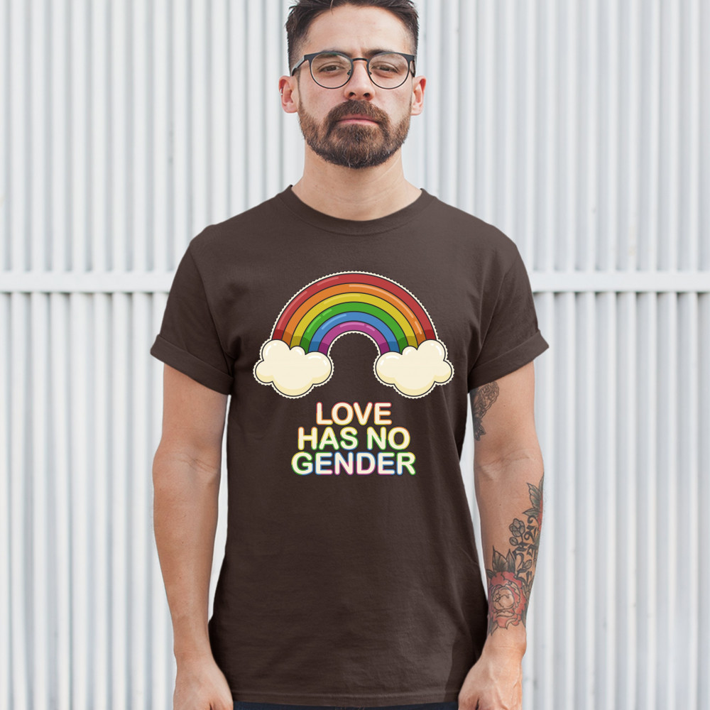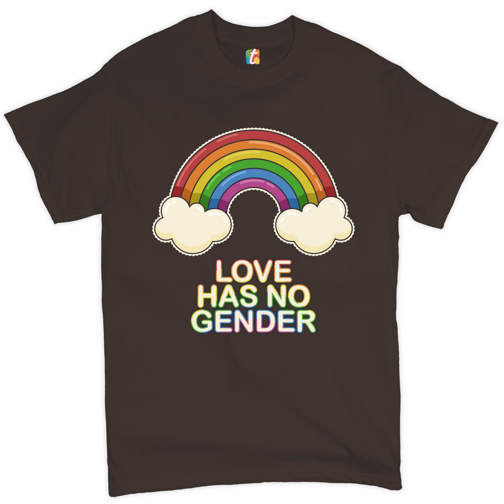 LOVE HAS NO GENDER t-shirt gay pride queer rainbow love is love men's tee brown