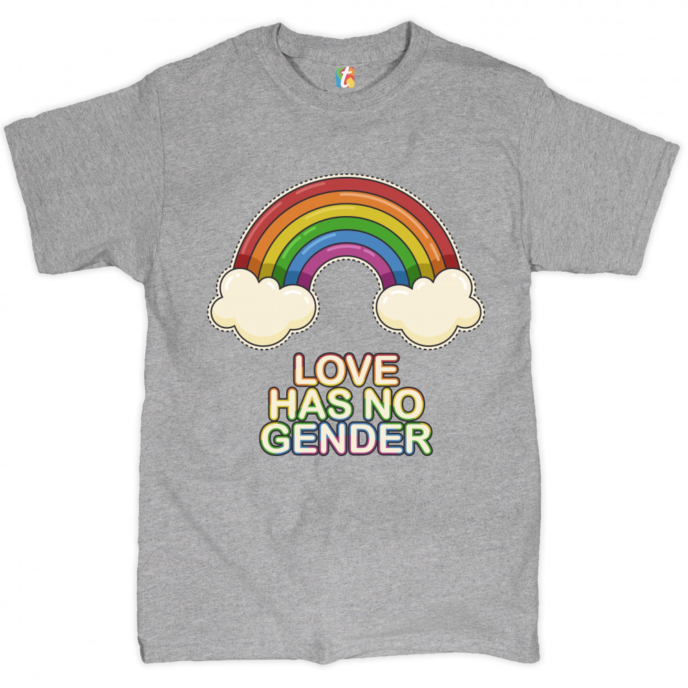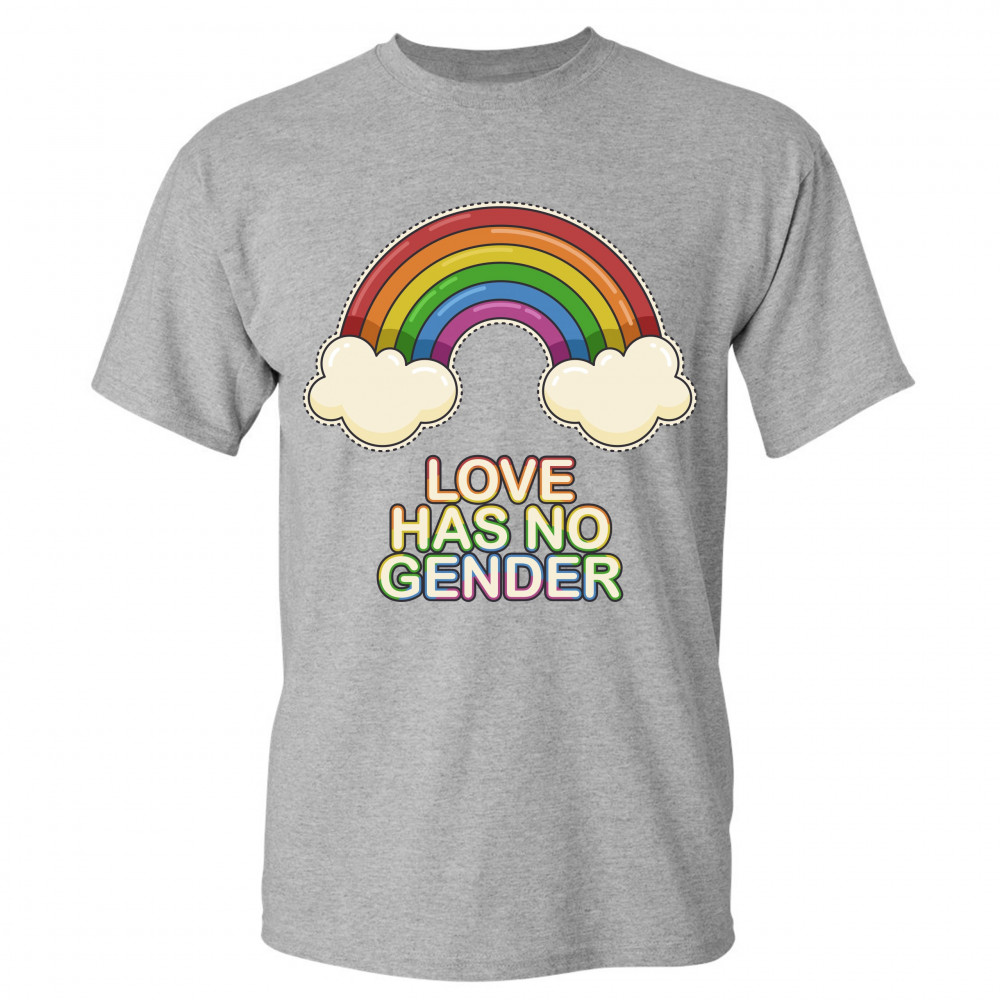 LOVE HAS NO GENDER t-shirt gay pride queer rainbow love is love men's tee gray
