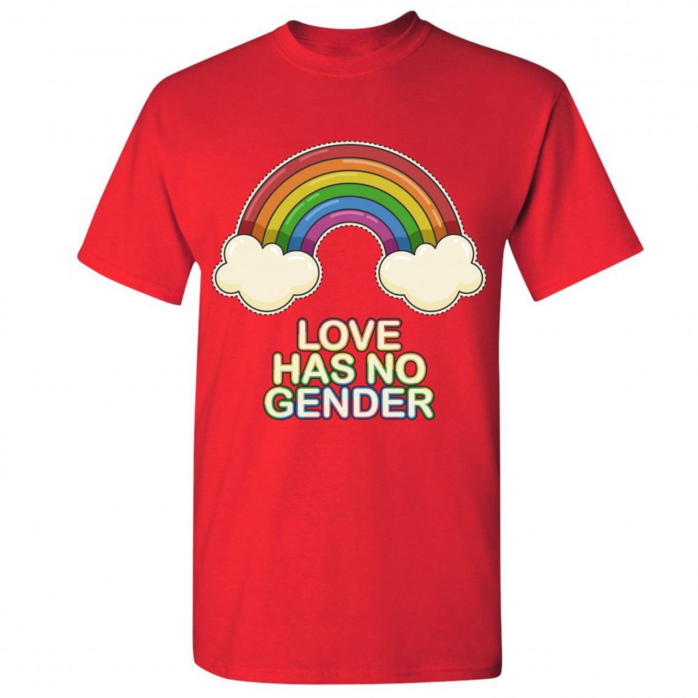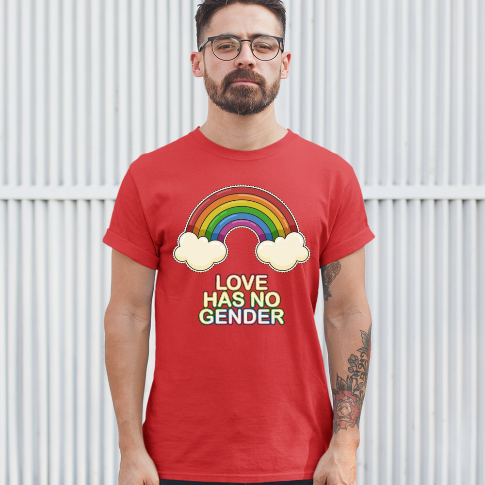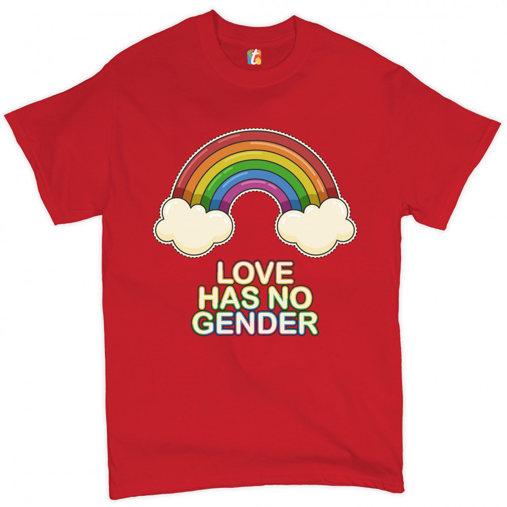 LOVE HAS NO GENDER t-shirt gay pride queer rainbow love is love men's tee red